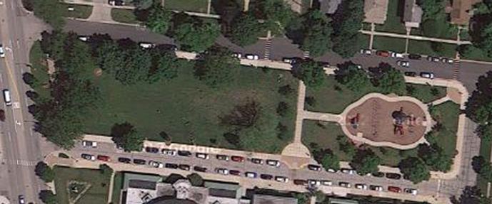 So check out THIS park in Liberyville, where it is designed (planned?) as a public amenity for the residents, not as an afterthought. It exists in its own defined space, accessible from ALL sides. It FEELS public, and is made easy to get to. Value is created by having a vibrant WELL-USED green space out the front windows of all the homes surrounding the space. One space, shared by all in a meaningful way.